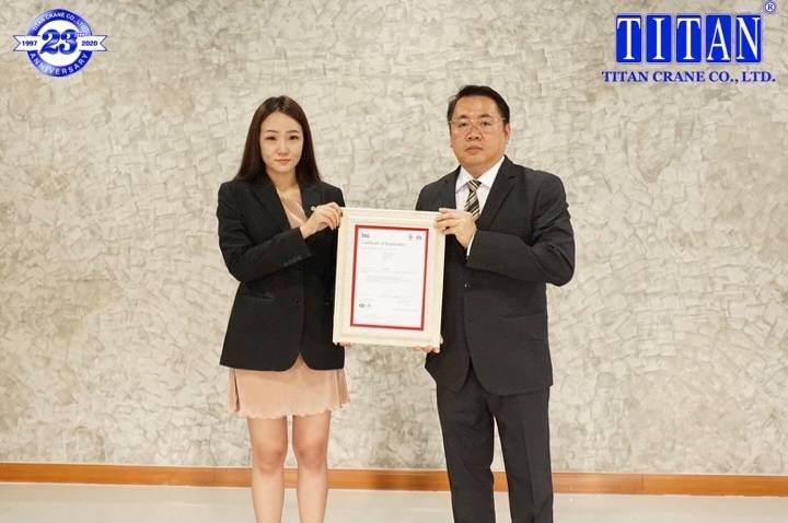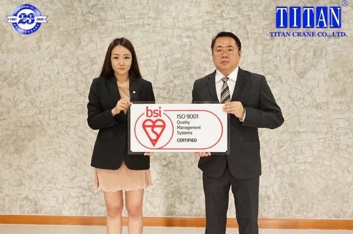 คณะผู้บริหาร และฝ่ายขายร่วมรับมอบ “Certificate of Registration ISO 9001:2015” จาก BSI. ซึ่งเป็นสถาบันรับรองมาตรฐานระดับโลกที่มีผู้ใช้การรับรองถึง 193 ประเทศทั่วโลก ทางบริษัท ไทแทน เครน จำกัดและกลุ่มบริษัทในเครือฯได้เลือกใช้การรับรองนี้เป็นมาตรฐานในการวางระบบการทำธุรกิจของเรา เพื่อแสดงให้เห็นว่า บริษัท ไทแทน เครน จำกัด เป็นบริษัทที่มุ่งมั่นที่จะทำงานให้ตรงตามความคาดหวังของลูกค้าอย่างจริงใจ และคงคุณภาพของงานบริการอย่างต่อเนื่อง เพื่อความคุ้มค่ากับที่ลูกค้าไว้วางใจเรา